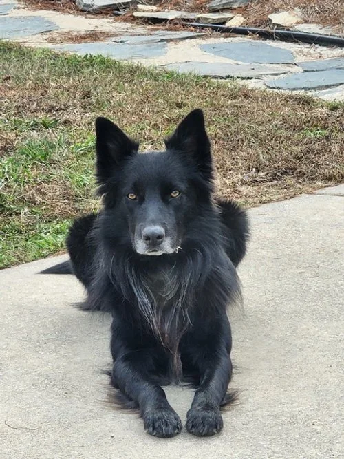 Grizzly is an 8 year old border collie mix (we think with aussie). He is super smart and affectionate! He's never met a person he doesn't want to love on. He LOVES to play fetch with his Frisbee, play in the water hose spray, chase our four wheelers and golf cart, and be near us as we do anything on the property. He is up to date on all shots but is not neutered.