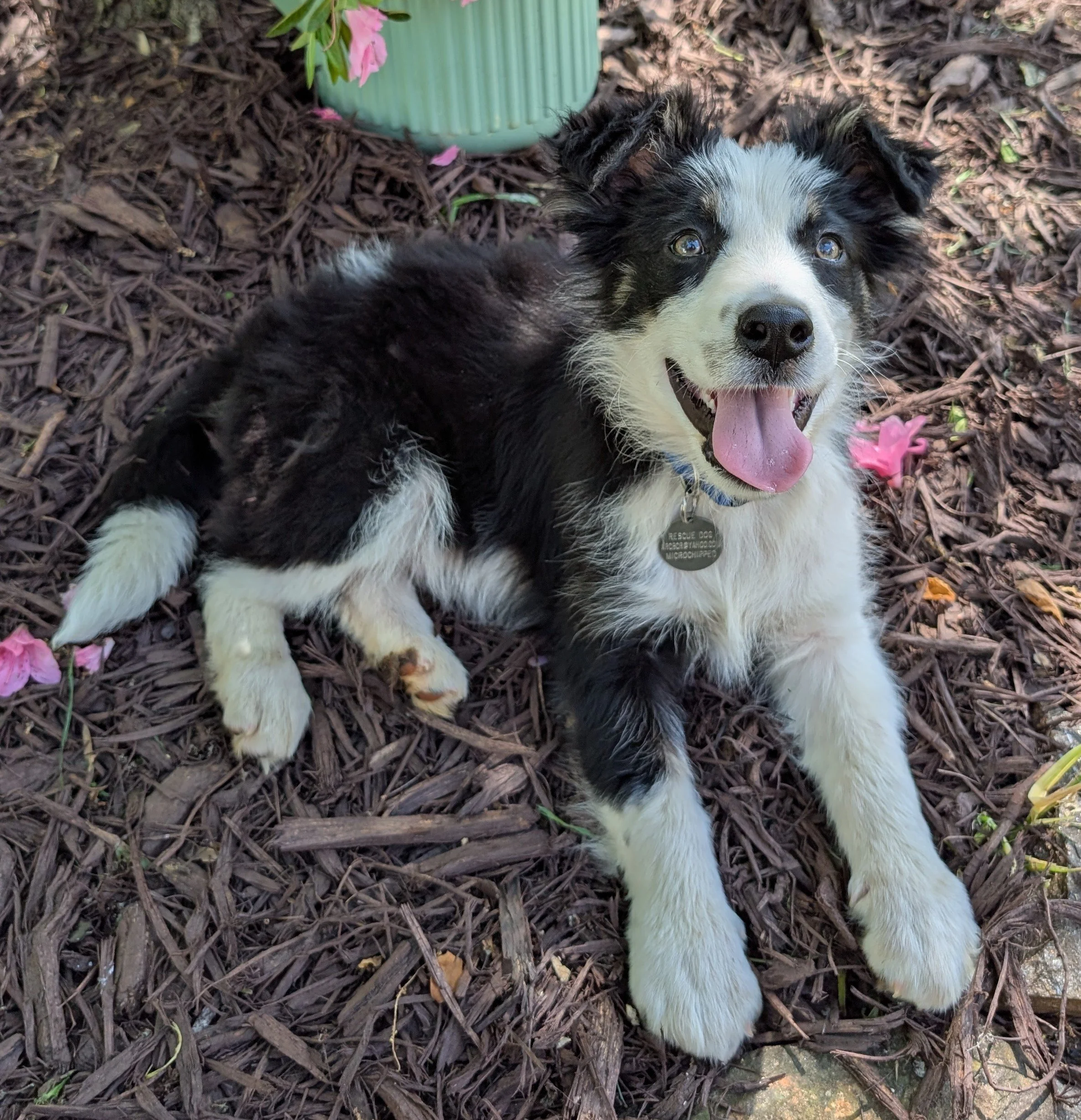 Scout is a very sweet and smart 10 week old charmer. He appears to be a BC or Aussie mix. He absolutely LOVES people and dogs. Scout is food motivated and knows a few commands. He sleeps soundly in his crate all night. Scout loves to explore with his mouth, as most puppies do, and is almost potty trained (only has a few accidents). He will be ready for adoption in 3-4 weeks when he is up to date on his vaccinations. In the meantime, Scout is being loved on by his foster in Charlotte NC